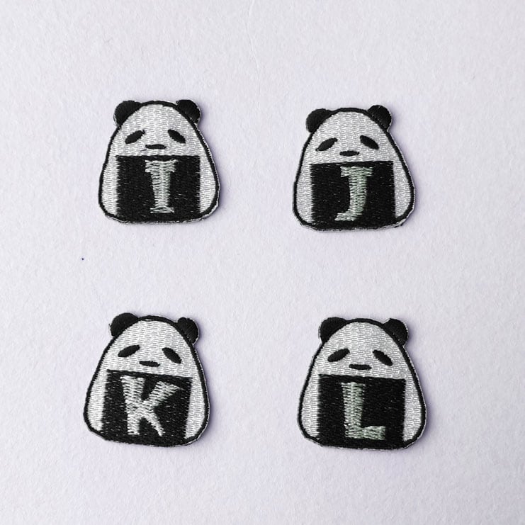 アイロン接着できるおにぎりぱんだのアルファベッドのワッペンです。